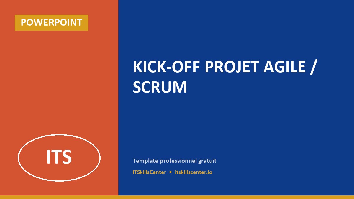 Slide deck pour kick-off projet Scrum/Agile : vision produit, équipe (Product Owner, Scrum Master, développeurs), roadmap (MVP/V1/V2/V3), backlog avec epics, organisation des sprints (durée, vélocité, Definition of Ready/Done), outils (Jira, Confluence, Git, Miro), métriques clés (burndown, vélocité, cycle time), analyse des risques et mitigations. Standardise vos démarrages projet.