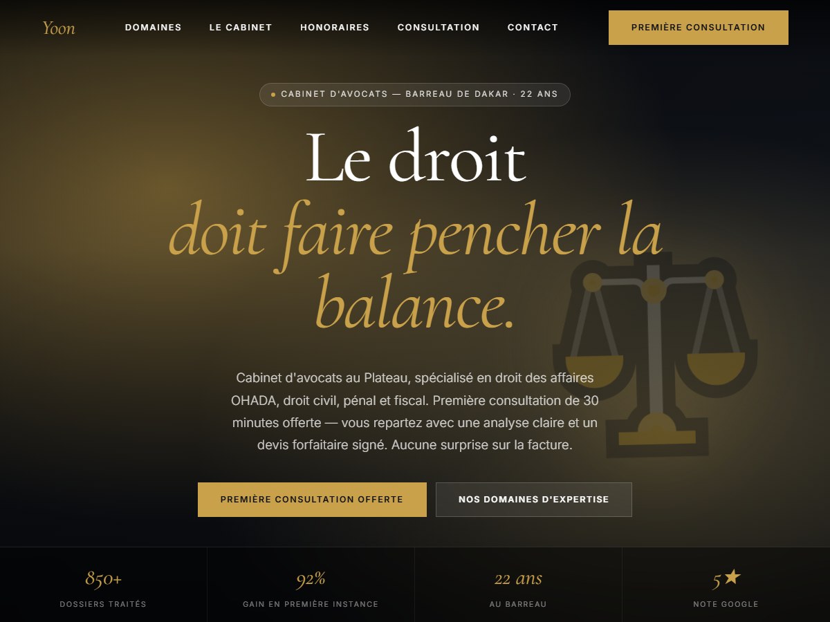 Yoon signifie « la voie · la justice en wolof » et résume parfaitement la promesse de ce thème : maîtres expérimentés en droit des affaires, droit de la famille, droit pénal. première consultation offerte.